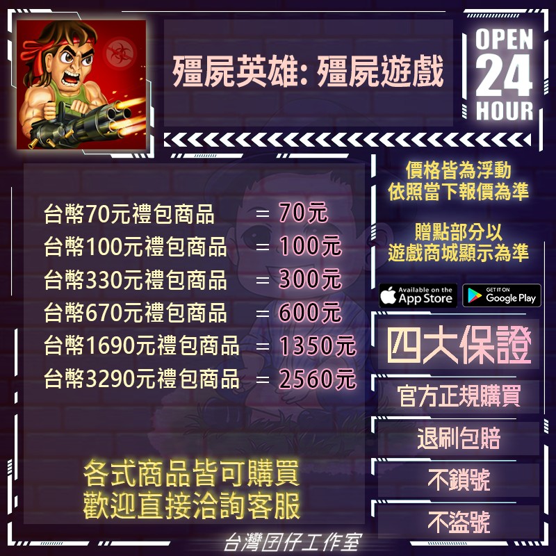 代儲【台幣3290元商品=2560元】 🏆24H客服🏆殭屍英雄:殭屍遊戲代儲🔥現貨秒出🔥台灣囝仔🔥退刷包賠🔥