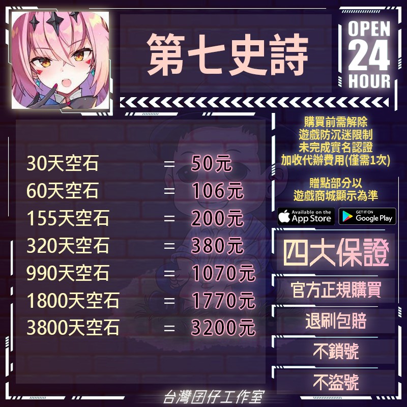 代儲【60天空石=106元】 🏆24H客服🏆現貨秒出🔥台灣囝仔🔥第七史詩陸服🔥20萬保證金