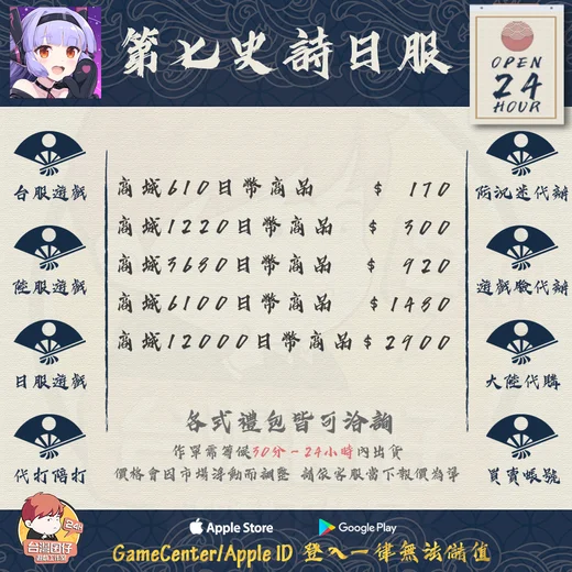 6️台灣囝仔台陸手遊代儲純粹為協助代儲服務,僅收取服務費,無賺取額外差價。