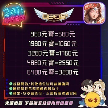 代儲【6480元寶】 24H四季代儲🏆評論全是速度快◆來試試🏆自由幻想陸服20萬保證金◆正規包售後