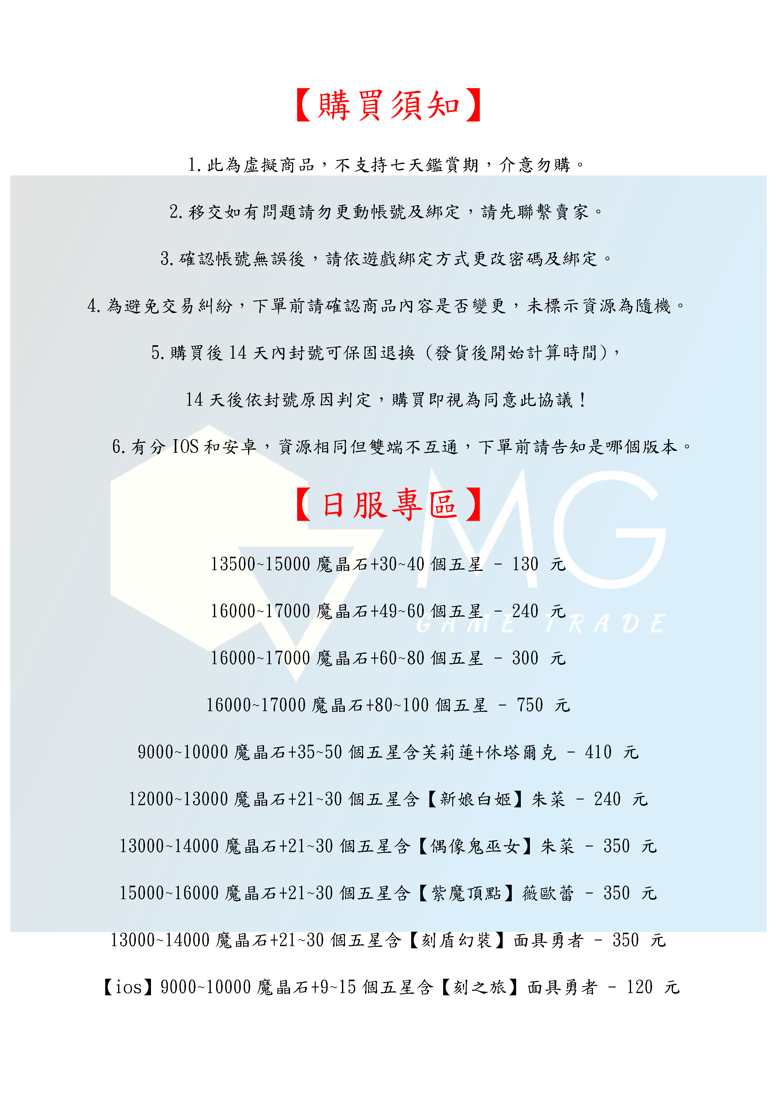 帳號 【初始號】 【MG數碼】 亞服 日服 美服 歐服 多石號 初始號 自選號 自選組合
