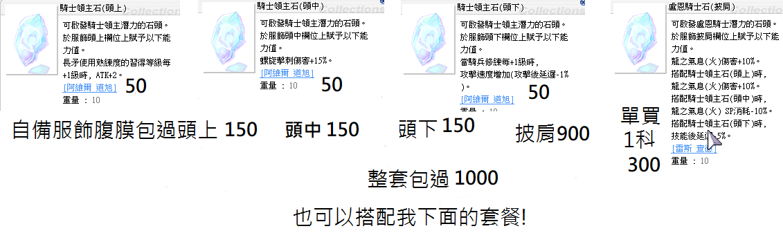 道具 客製化服飾附魔 盧恩騎士石1.0成品4件整套服飾 之氣息 龍火