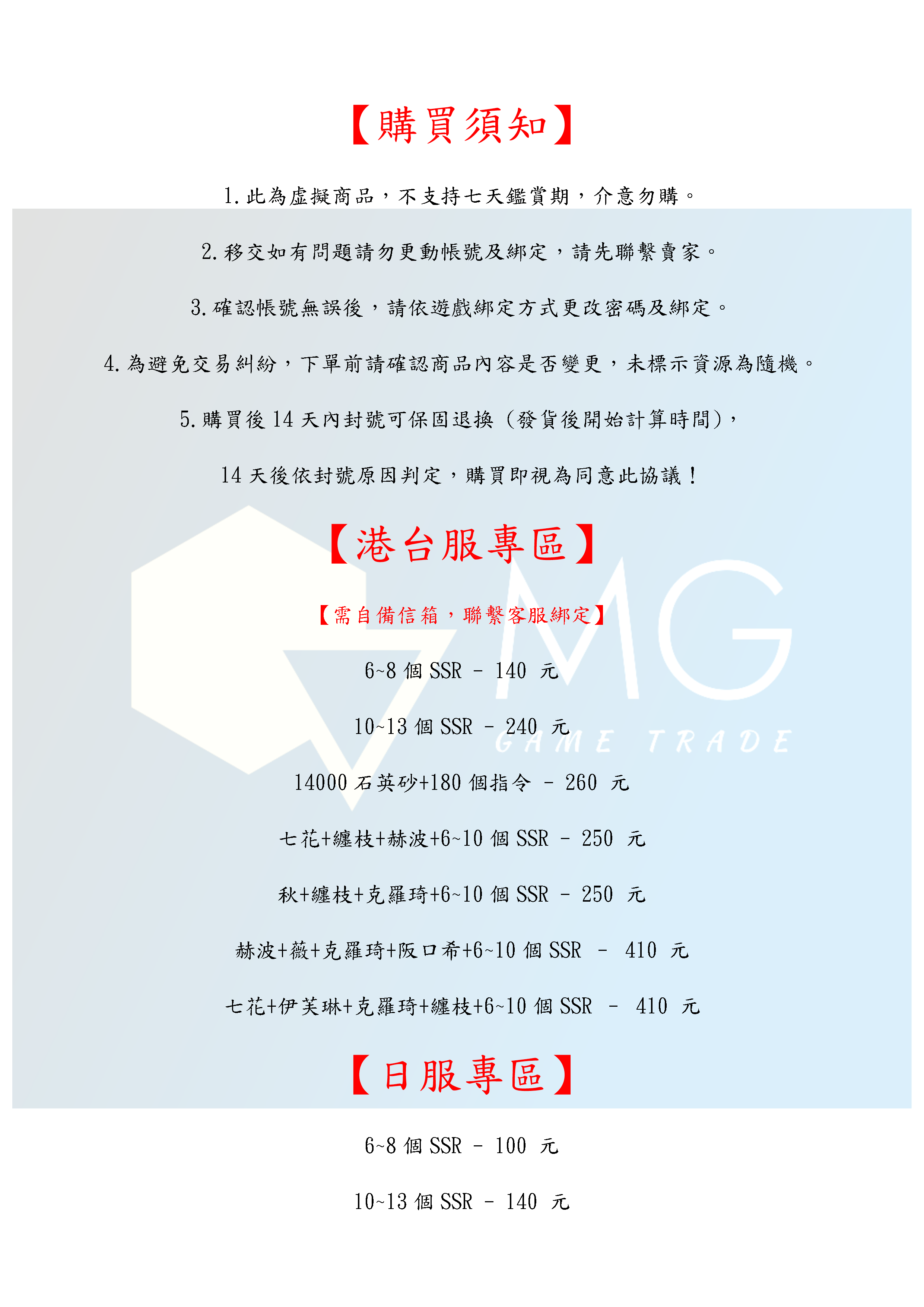 帳號 【初始號】 【MG數碼】 台服 日服 陸服 國際服 多石號 初始號 自選號 自選組合