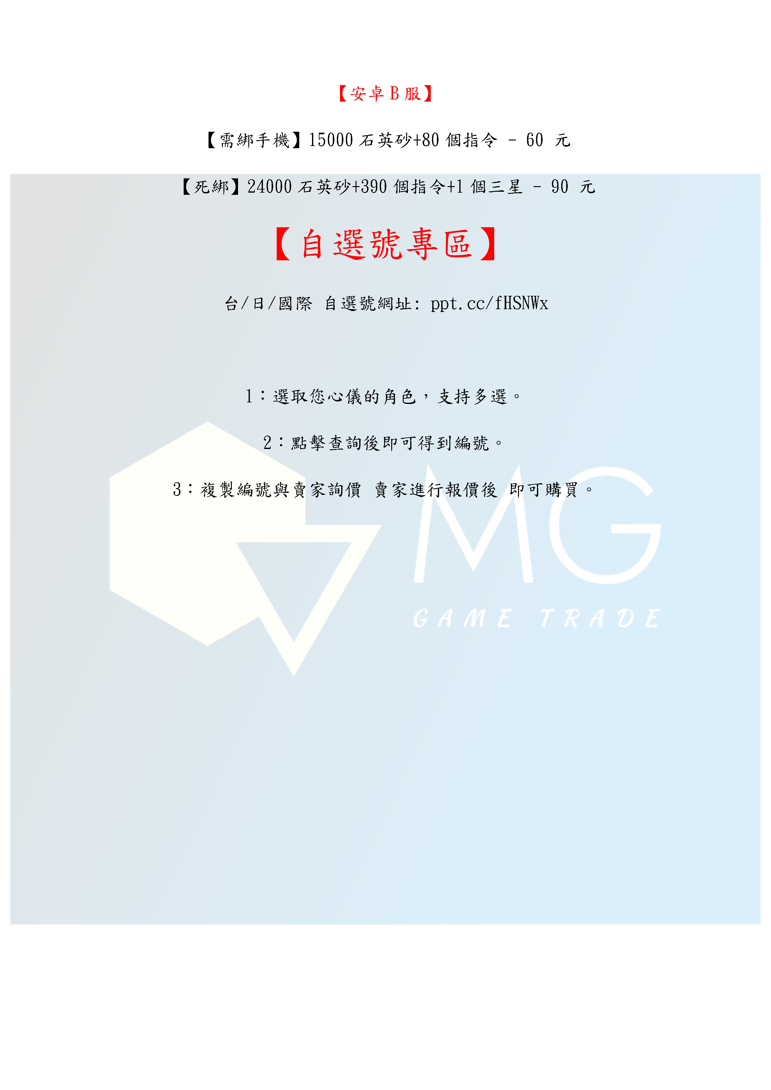 帳號 【初始號】 【MG數碼】 台服 日服 陸服 國際服 多石號 初始號 自選號 自選組合