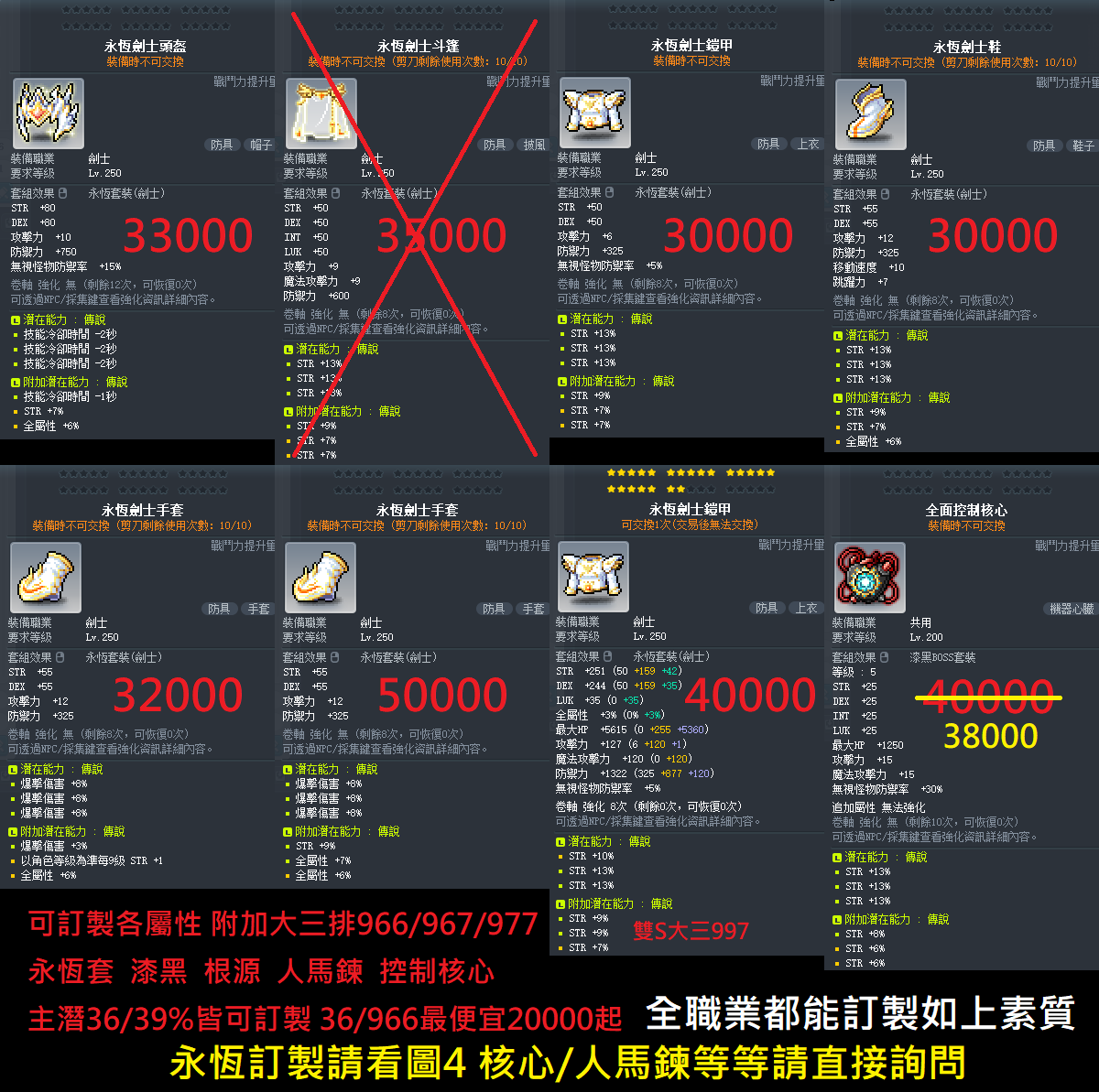 道具 【250等永恆裝備訂製】 訂做 盜賊永恆套裝 劍士永恆套裝 米特拉 雙傳頂培套 漆黑套裝 法師永恆裝 弓手
