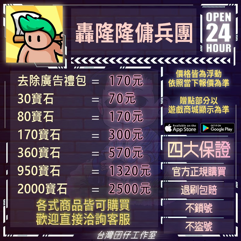 代儲【30寶石=70元】 🏆24H客服🏆轟隆隆傭兵團代儲🔥現貨秒出🔥台灣囝仔🔥退刷包賠🔥