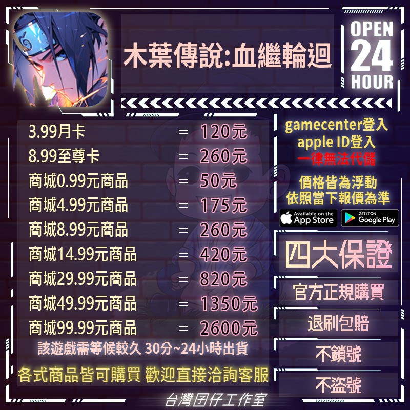 代儲【商城49.99元商品=1350元】 🏆24H客服🏆木葉傳說:血繼輪迴代儲🔥現貨秒出🔥台灣囝仔🔥退刷包賠🔥