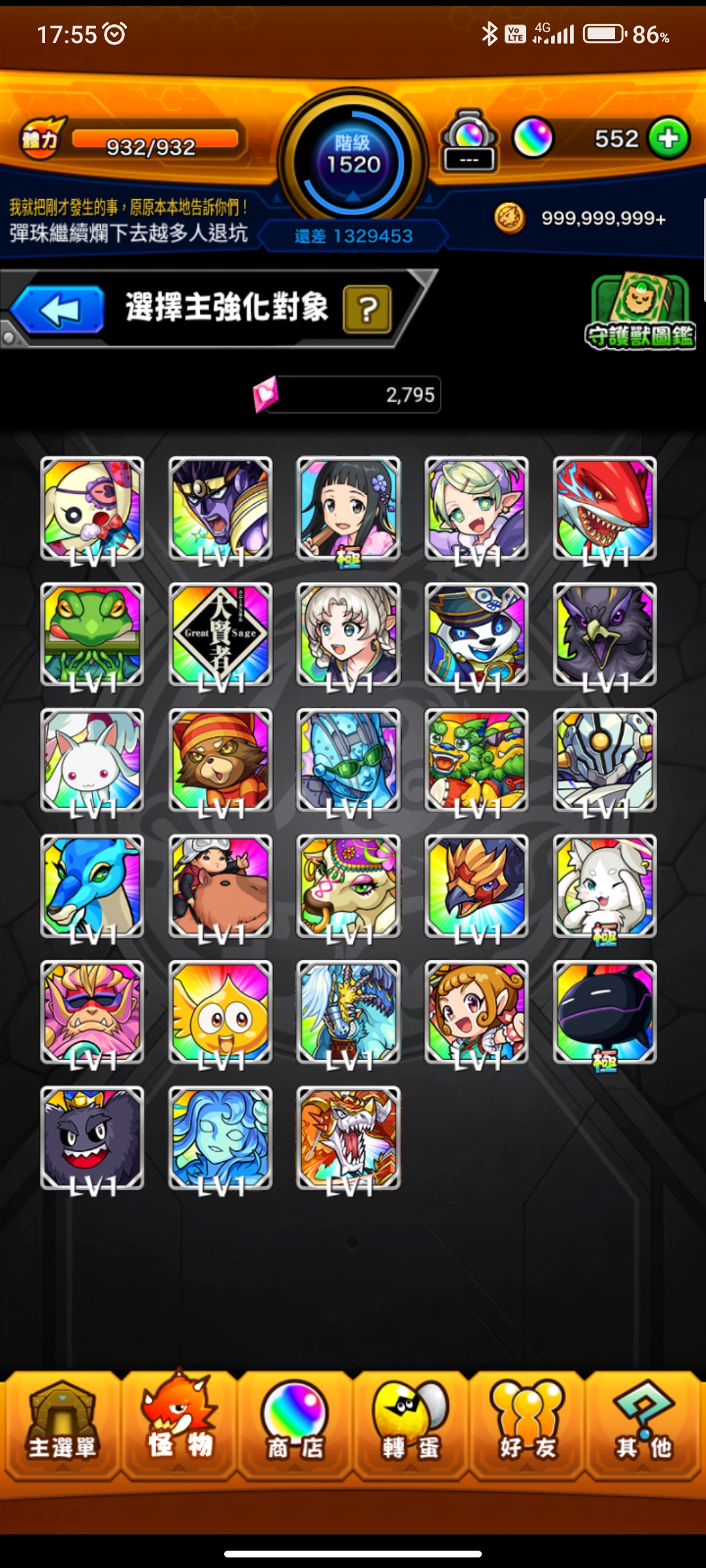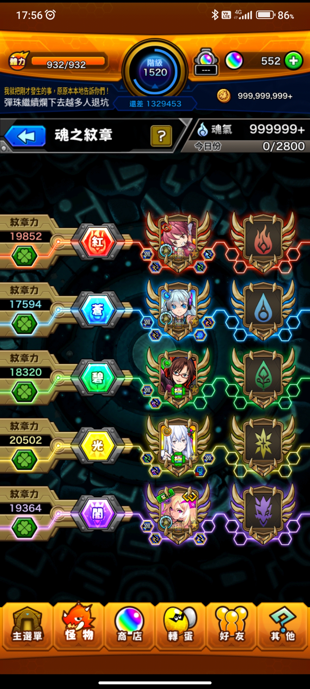 材料資源還有很多,可以慢慢培養許多角色,紋章力都會隨著有刷運而增加,因此就不再更新紋章力照片,另外也新增目前所持有的全部守護獸照片,後續新增的守護獸也不再更新照片!