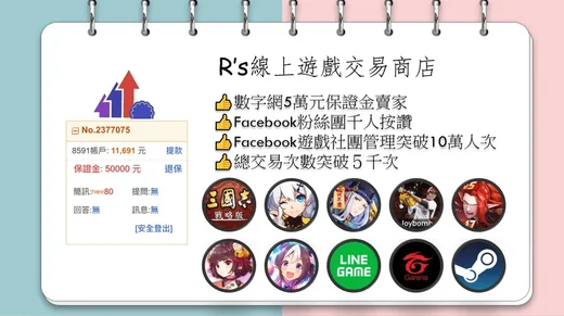 R's線上遊戲交易商店(R商店)成立於2016年,是以買賣遊戲帳號起家的虛寶交易商,後續積極拓展業務範圍至代儲、社群經營,旨在為遊戲玩家提供解決方案。