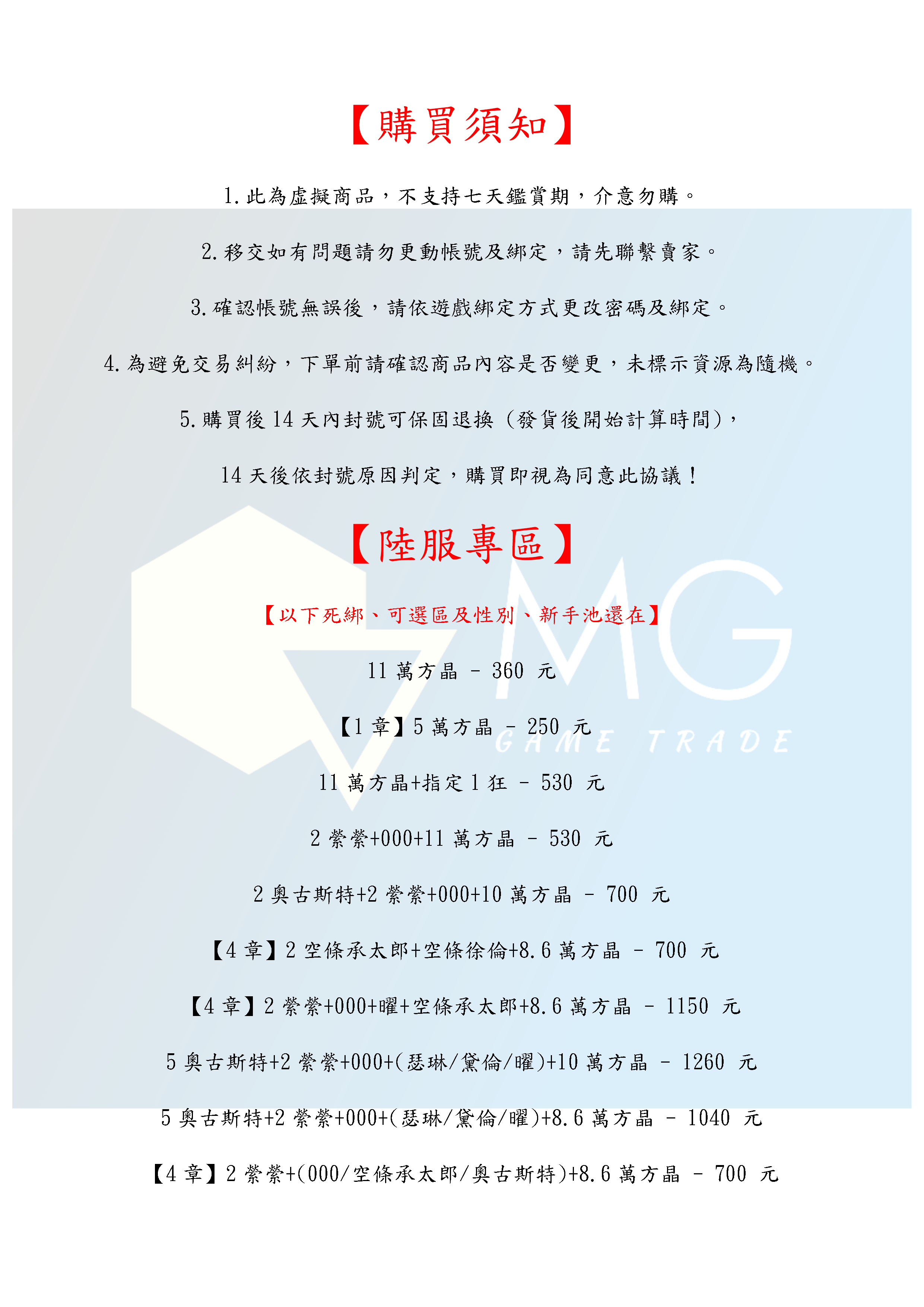 4.為避免交易糾紛,下單前請確認商品內容是否變更,未標示資源為隨機。