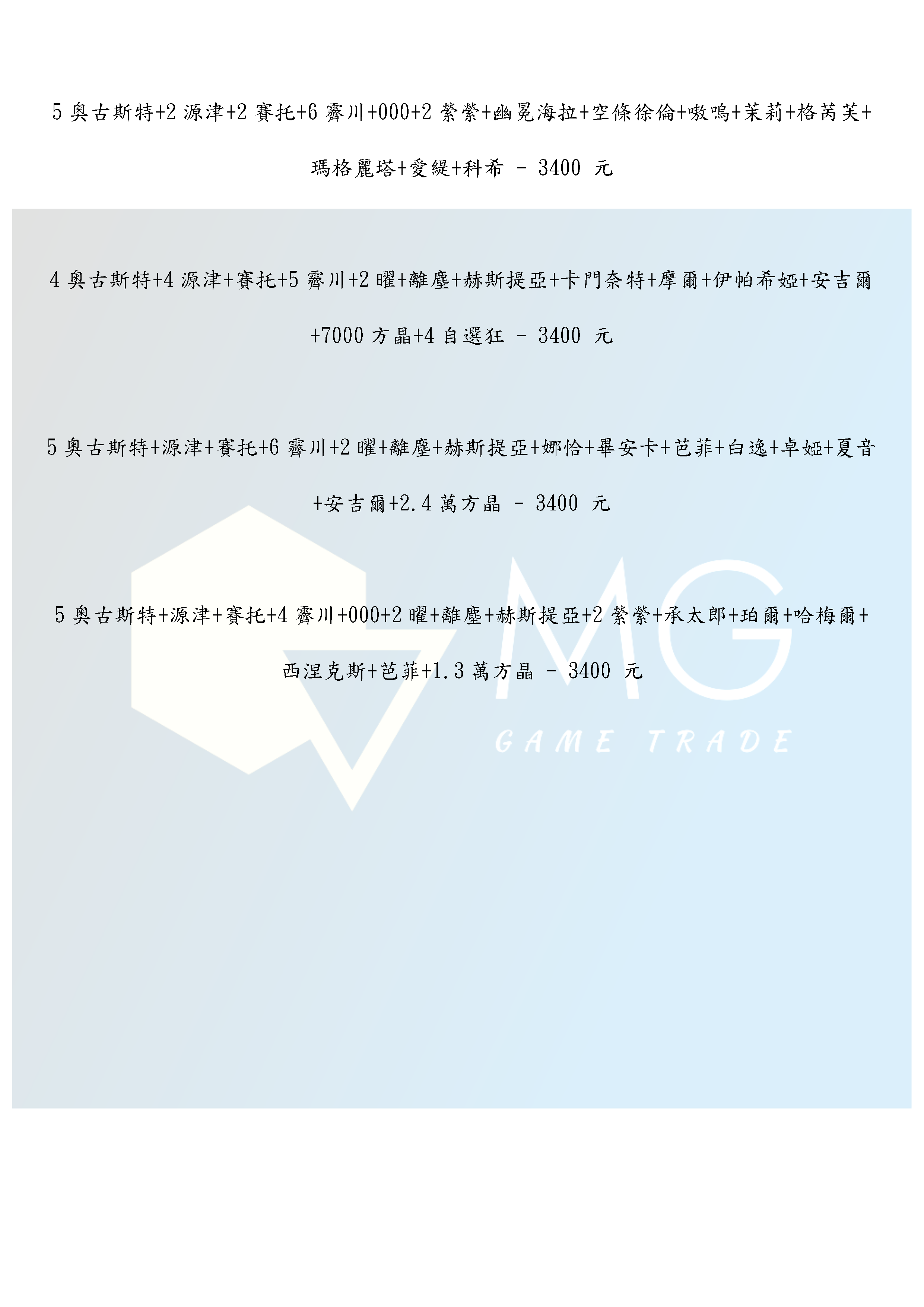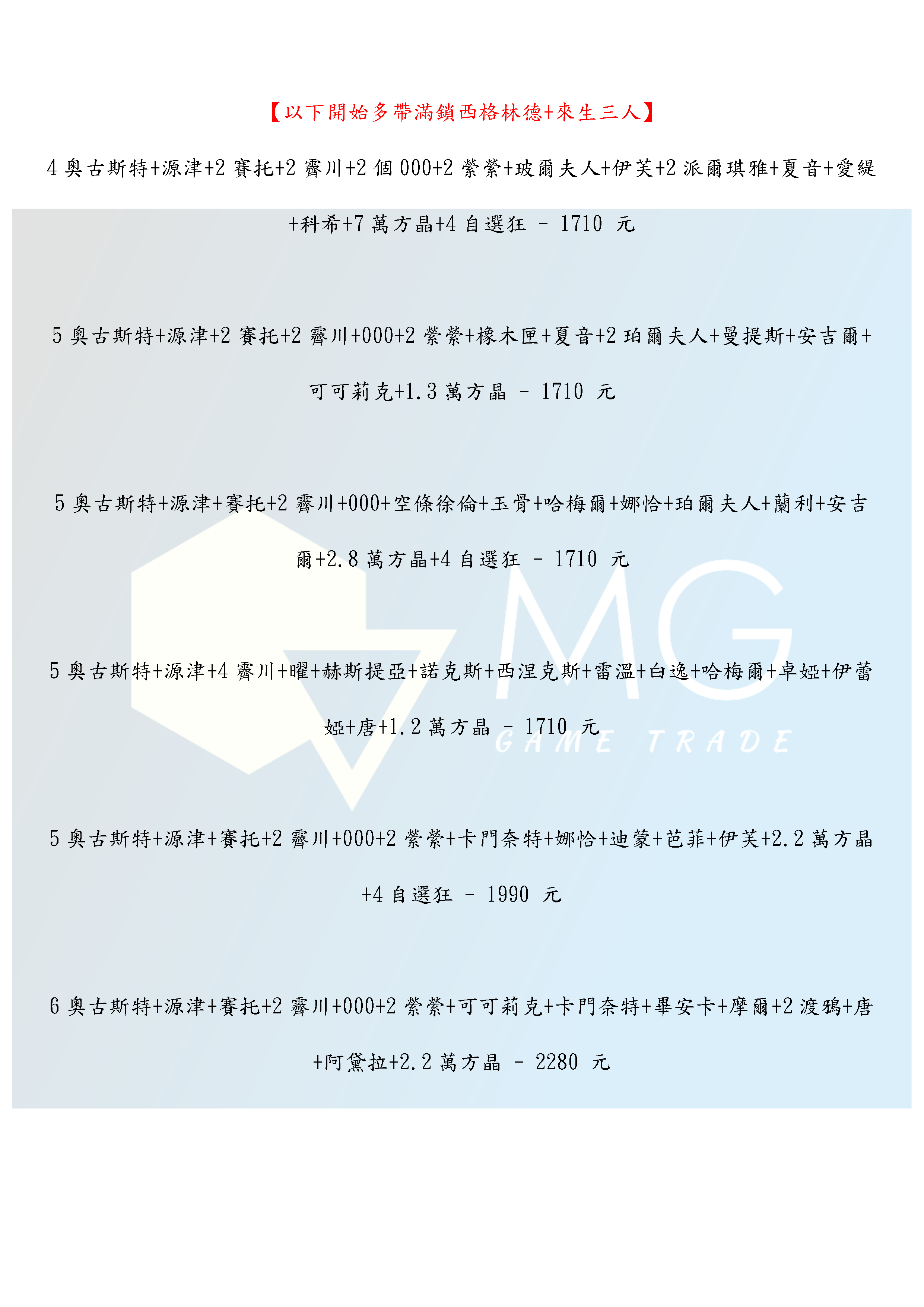 4.為避免交易糾紛,下單前請確認商品內容是否變更,未標示資源為隨機。