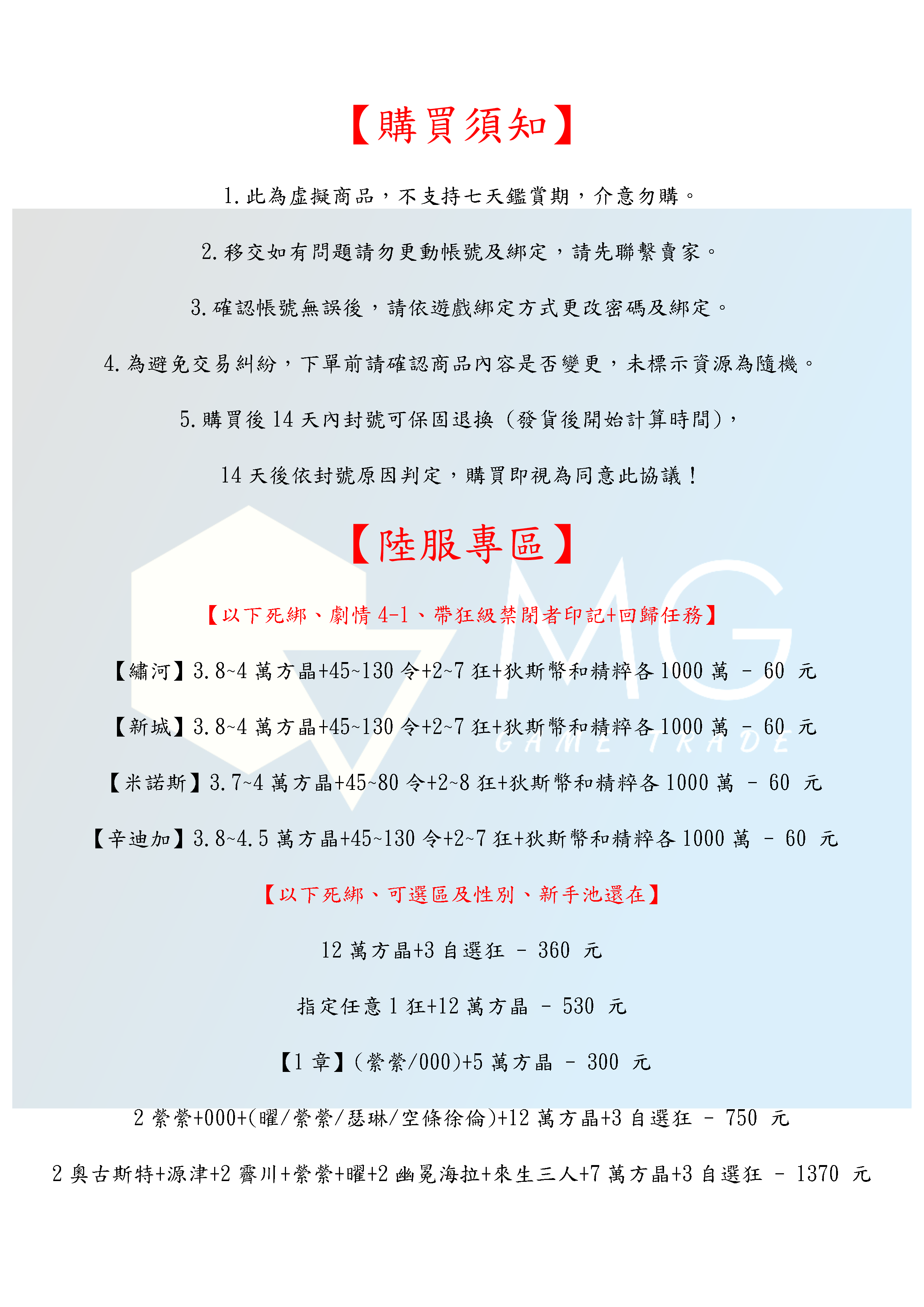 4.為避免交易糾紛,下單前請確認商品內容是否變更,未標示資源為隨機。