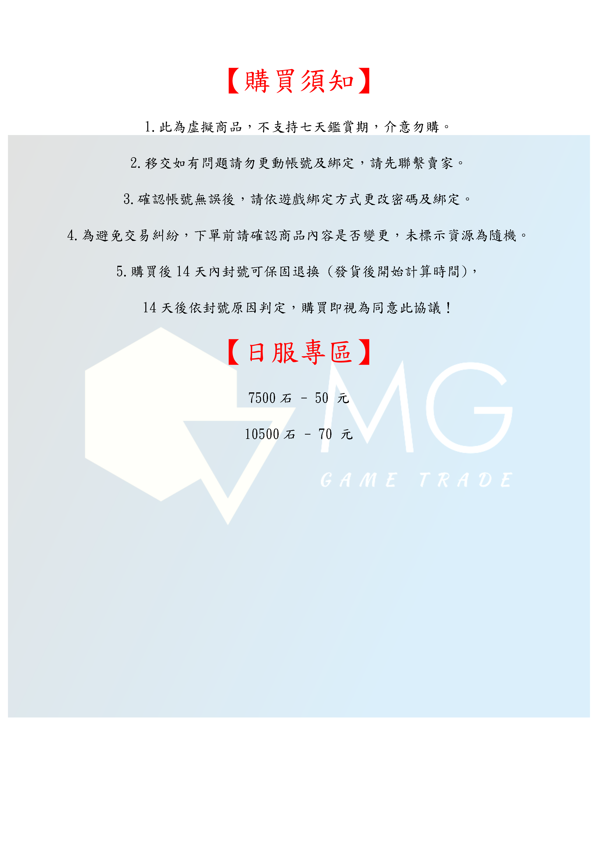 14天後依封號原因判定,購買即視為同意此協議!