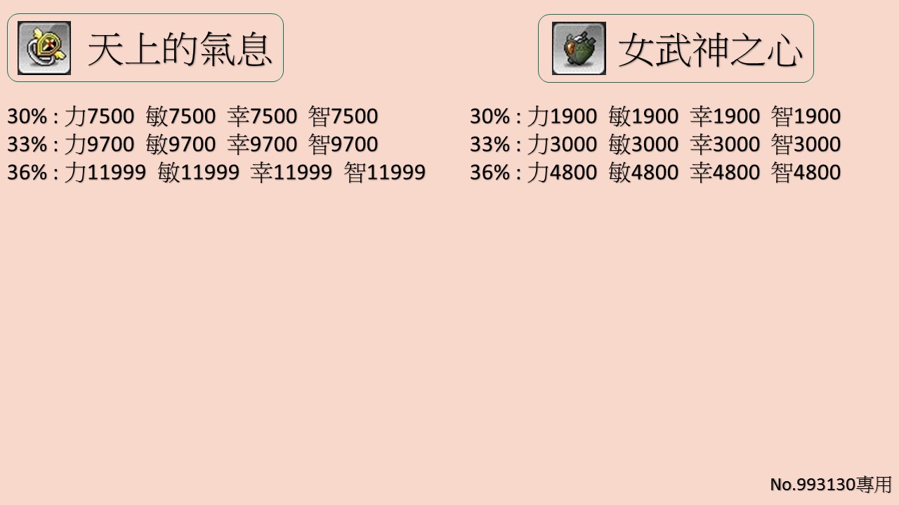 道具 【女武神之心】 『女武神之心』最頂心臟、30%33%36%39%、%力%敏%幸%智