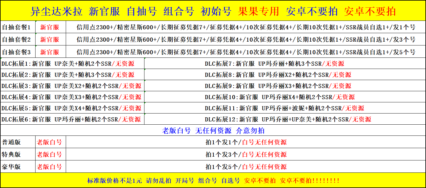全 8591首家 異塵達米拉初始號自抽號蘋果ios0安卓開局號自選組合B站服/官服
