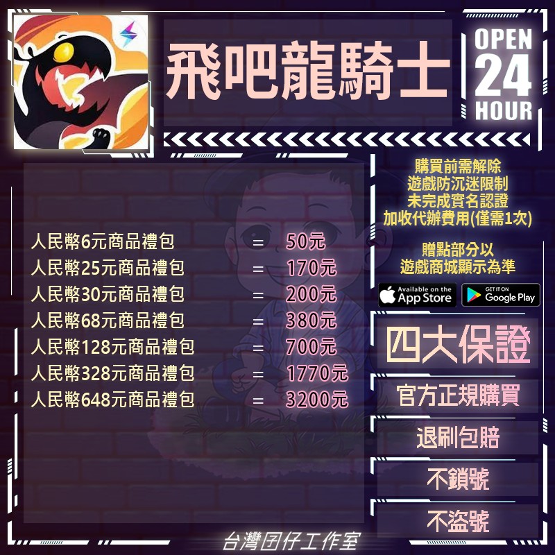 代儲【人民幣648元商品=3200元】 🏆24H客服🏆現貨秒出🔥台灣囝仔🔥飛吧龍騎士陸服🔥20萬保證金