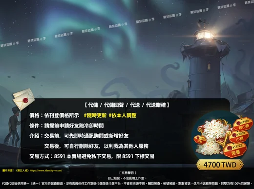 #第五人格 #代送 #代送贈禮 #工作室渠道 #依工作室調整 #隨時更新 #限專屬賣場下標