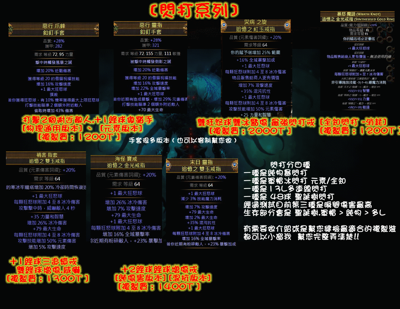 所需要的複製裝備跟價錢!