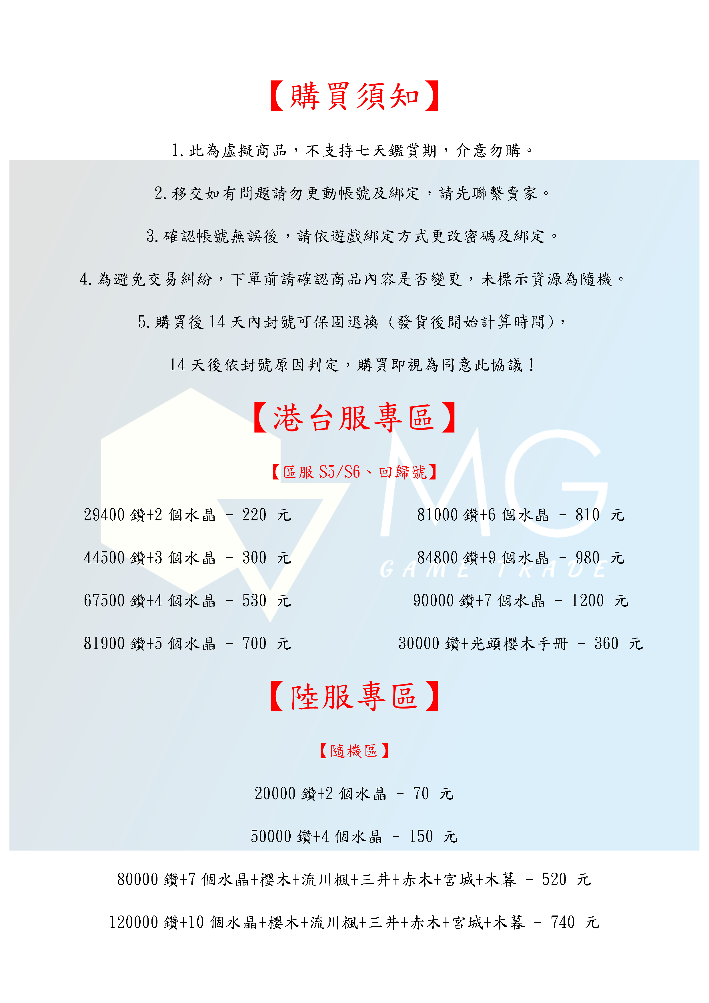 【初始號】【MG數碼】 台服 陸服 多石號 多鑽石號 初始號 自抽號 自選號