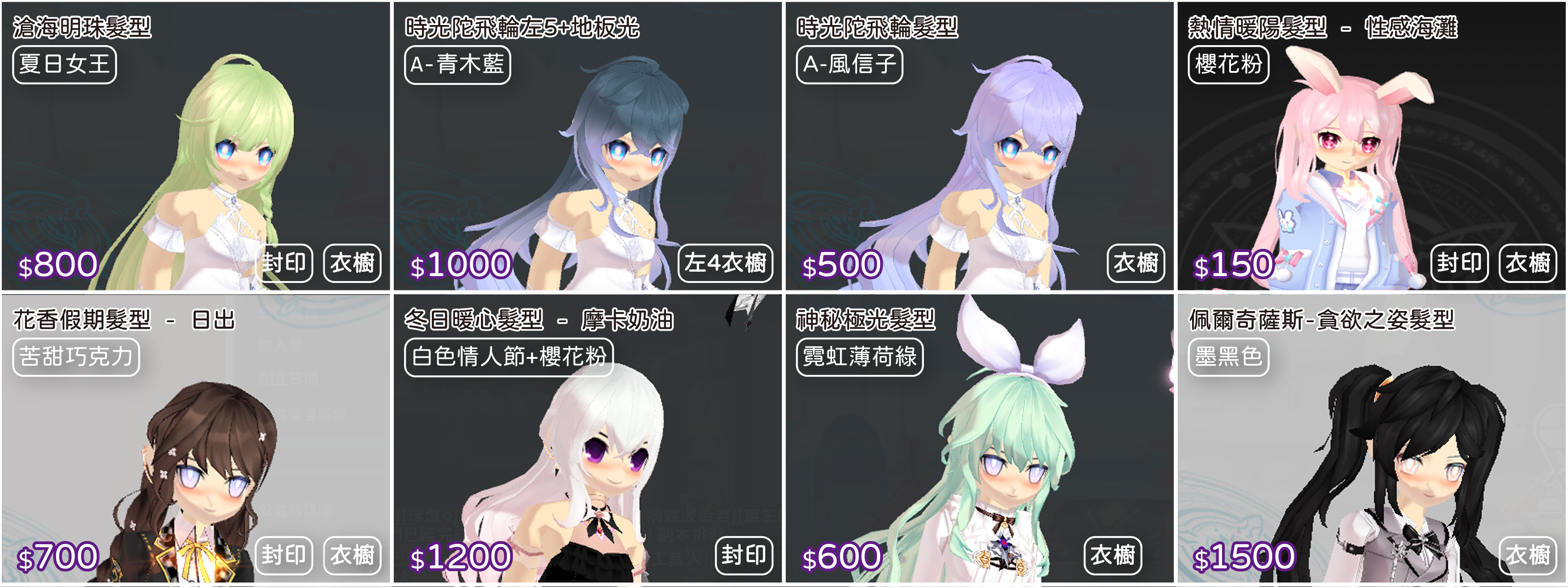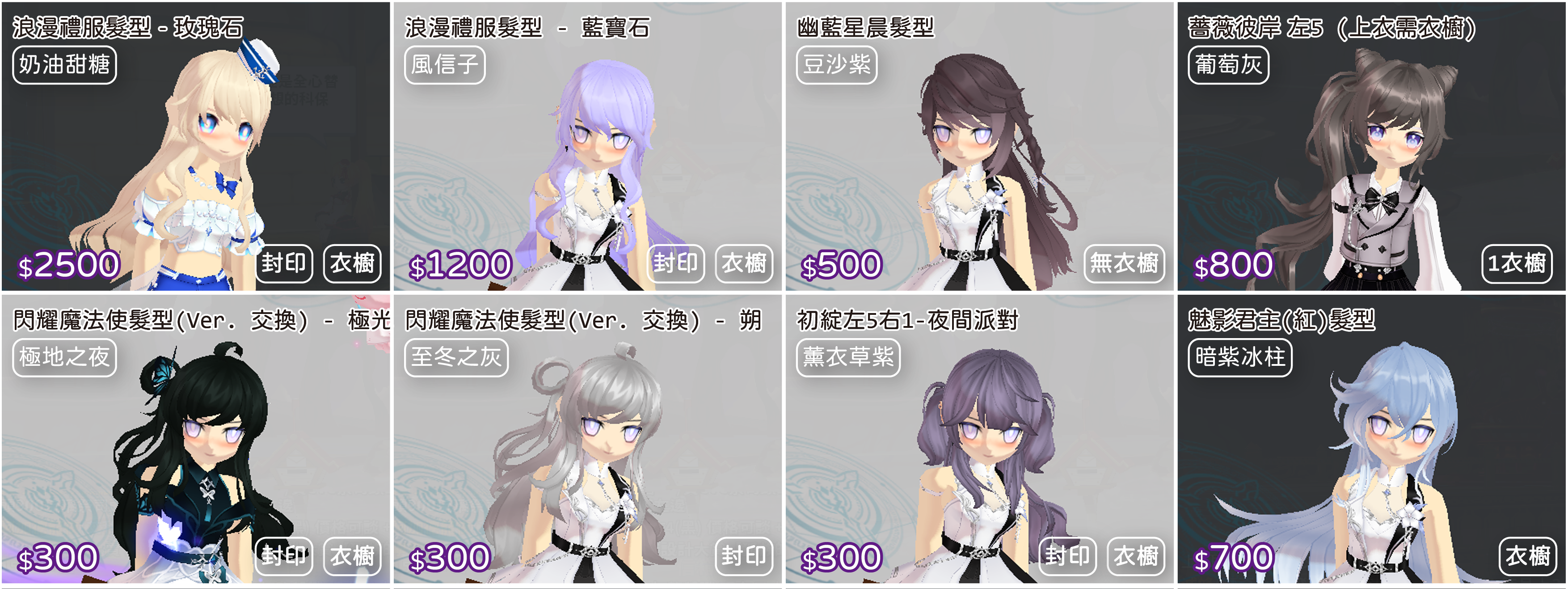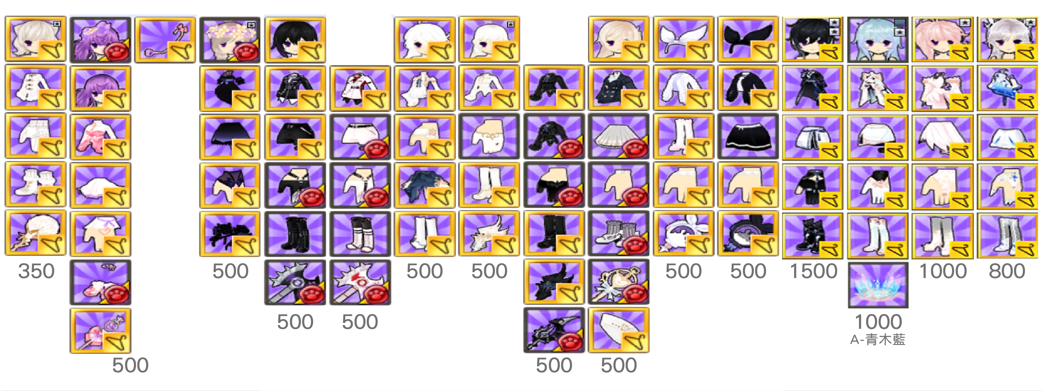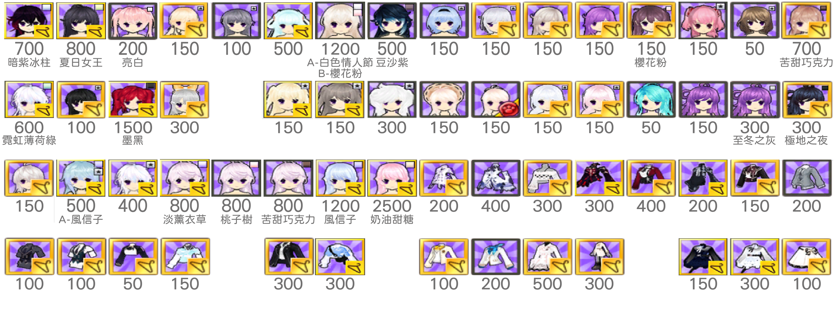 白封24/衣櫥髮型上下75/手鞋36/武器飾品105/連身150