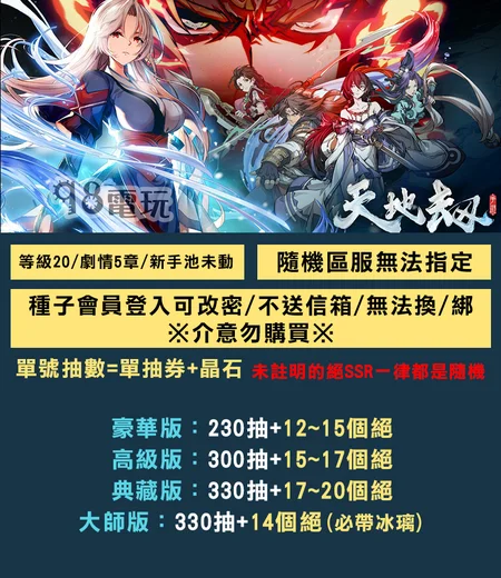 3.付款前,請再次確認要購買的帳號資訊(如伺服器、適用機型)無法接受移交後才告知買錯了!