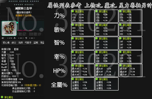 傳說30%(力.敏.智.幸.HP.選一)單件部位=1000T起