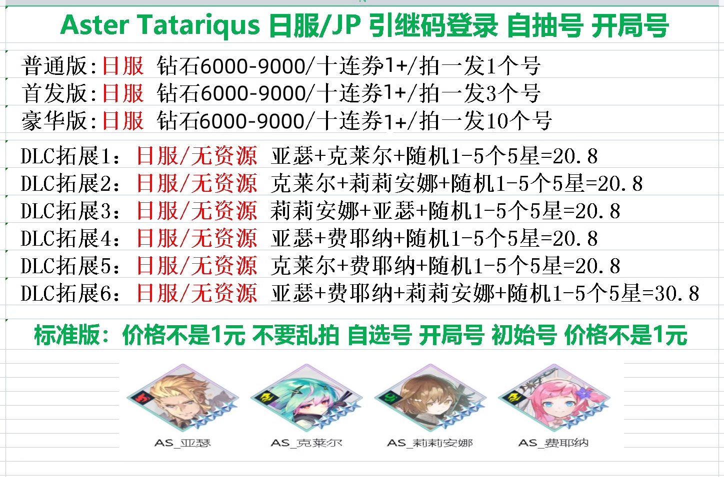 全8591 首家 Aster Tatariqus初始號 日服アスタータタリクス自選號自抽石頭號