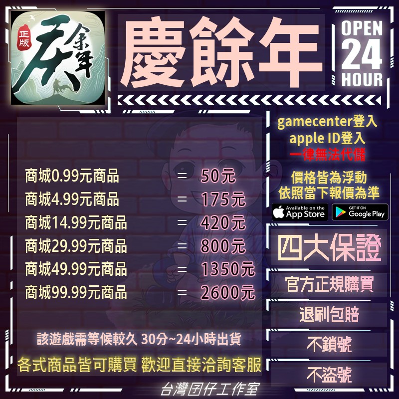 代儲【商城99.99元商品=2600元】 🏆24H客服🏆慶餘年台服代儲🔥現貨秒出🔥台灣囝仔🔥退刷包賠🔥