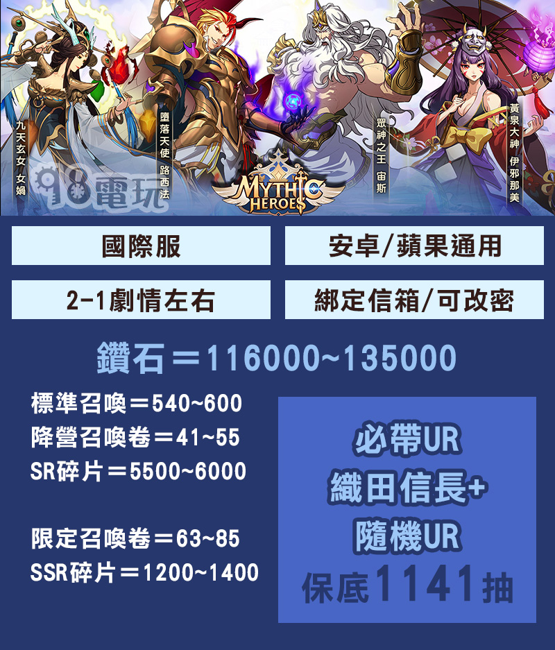 帳號 【初始號】 🌟116000~135000鑽🌟保底1141抽🌟必帶UR織田信長+隨機UR