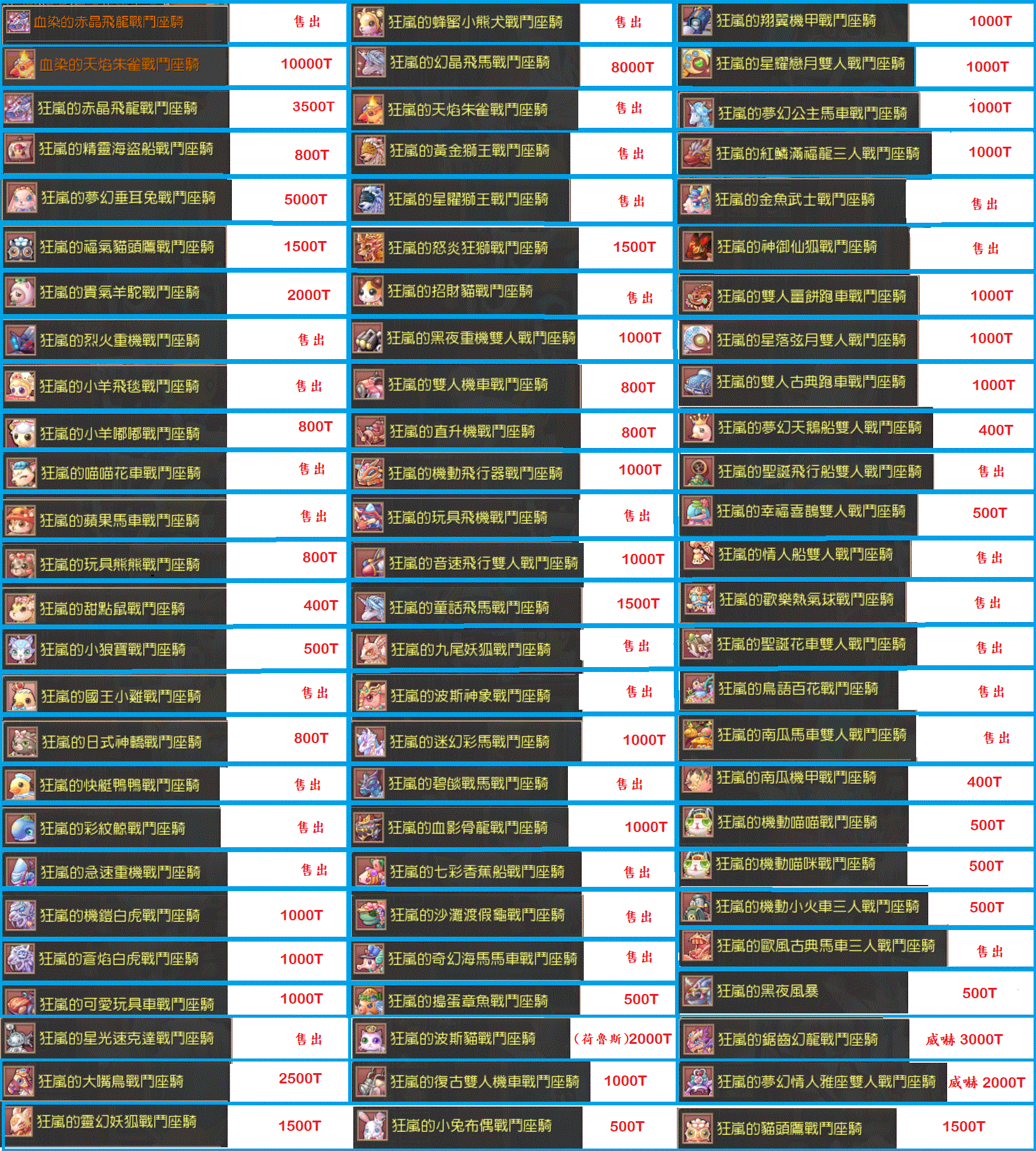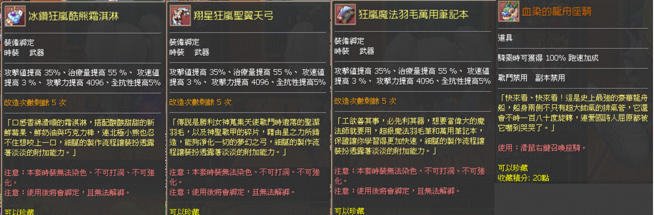 道具 ❄️雪❄️血染/狂嵐/式神/秘石/座騎/金武/素質/時裝/熊寶/完美/技能書