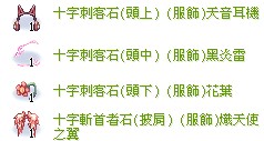 道具 十字斬首者石1.0/十字刺客石/迴旋刀刃服飾(上+中+下+披肩)