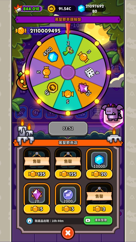 無限金幣 + 21億鑽石 + 21億強化石 + 21億符咒 + 21億遺物 + 21億技能點數 + 21億研發點數 + 21億大富翁骰子 + 道具 +21億副本鑰史(每個副本各21億) + 21億聯盟商店幣 + 21億萬聖節糖果 = 1000元