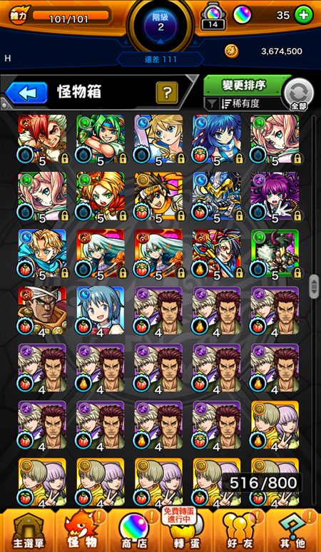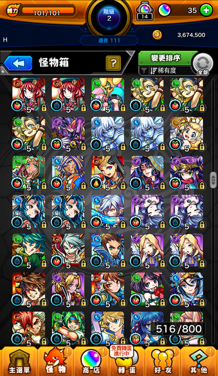 盧娜2+梅摩莉+浮士德+麒麟兒+妮奧3+八重+路西法3+白銀+義勇+喀隆a+唐老鴨+烈焰2+查理曼+月下老人+安娜塔西亞+惠比壽+惠比天+阿碧絲2+亞米妲+王者之劍+傑克+甘露+數珠丸恆次+包青天+婆娑羅+天使歌姬2+龐克+摩西+弁財天+大典太+亡命兔+骸+石川+亞伯+綿津見2+潘朵拉2+加百列+卑彌乎+諾斯特2+背德手槍+天草3+南丁格爾+西施+項羽+泰佩絲特+麗菈+西王母2+瓦爾普吉斯+聖女貞德+雅格娜姆特x2