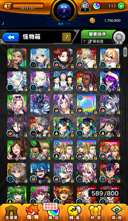 正宗+八雲2+奈特梅雅+魔奇亞2+梅摩莉+聖德太子+新年妮奧+瑪娜+路西法+所羅門+利姆路+紫苑+兵長+曉美燕+七海+烈焰+猛虎+萊恩2+阿碧絲+摩西+福爾摩斯2+哈磊露亞2+比娜+麻穗呂芭+安娜塔西亞+惠比壽2+two for all+風神雷神+弁財天+命運共同隊+天使歌姬+梅塔特隆+聖德芬2+綿津見2+潘朵拉3+神威+圖坦卡門+愛麗絲2+天草+諾斯特2+小野小町+瓦爾普吉斯+麗菈+泰佩絲特+忽必烈+織田信長x+忽必烈+羅賓漢+貂蟬+妲己+諾亞2+項羽