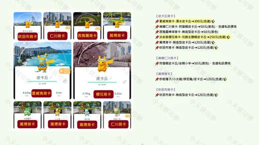 🌟小天🌟Pokemon go(背卡) 交換各式背卡寶可夢價目表