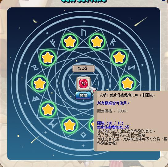 另售10星攻擊一套傷害36.6% 係數42.5% 機率42.5% 冷卻23.6% 259t