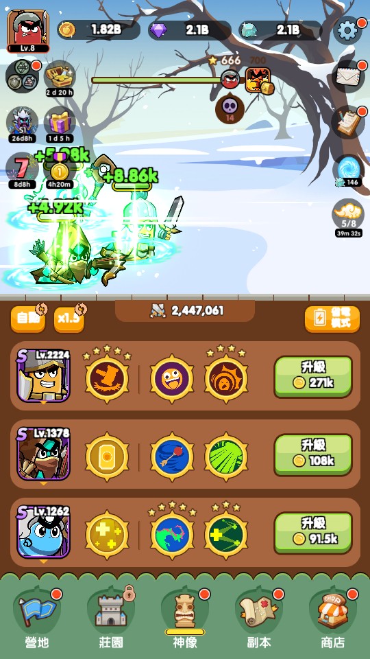 21億金幣 + 21億鑽石 + 21億隨機召喚卷 + 21億裝備強化石 + 21億天賦點數 + 21億技能升階材料 + 21億神器石 + 5款副本鑰使各21億 + 無限莊園生產全資源 + 21億聯賽商店幣 = ?元