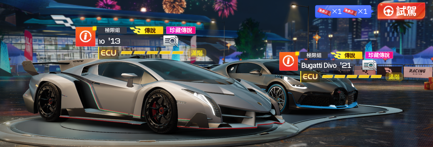#X 1 1388 Ferrari FXX K '14 or Bugatti 黑夜之聲+Koenigsegg Jesko or Lotus Evija+Koenigsegg Regera '16+毒藥 or Divo + 布加迪 威龍 + CCX + 牛魔王 Supra(A80)+拉法+Reventón 雷文頓+RX-7+限定金車*4~6+金車*8~16台 8~8.3萬鑽 +200可升級毒藥+Divo