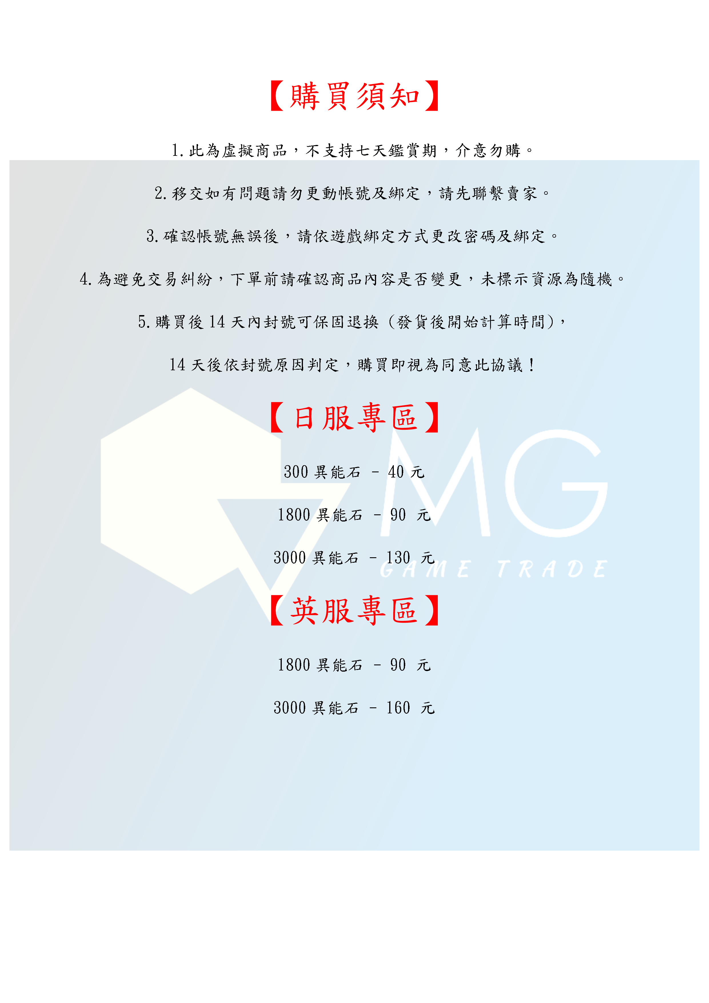 帳號 【初始號】 【MG數碼】 日服 英服 多石號 多異能石號 初始號 自抽號 自選號