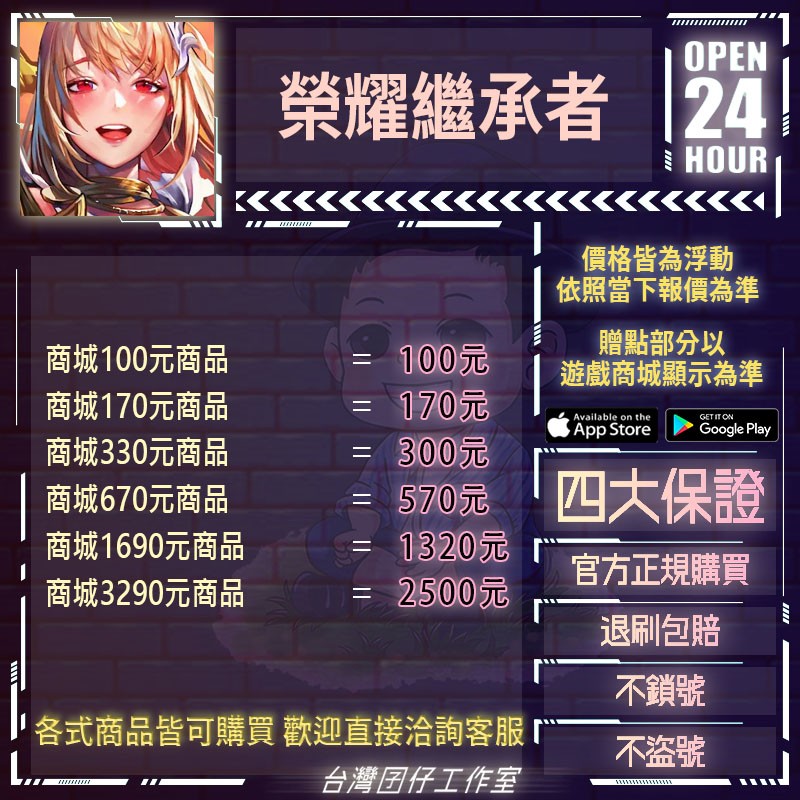 代儲【商城170元商品=170元】 🏆24H客服🏆榮耀繼承者代儲🔥現貨秒出🔥台灣囝仔🔥