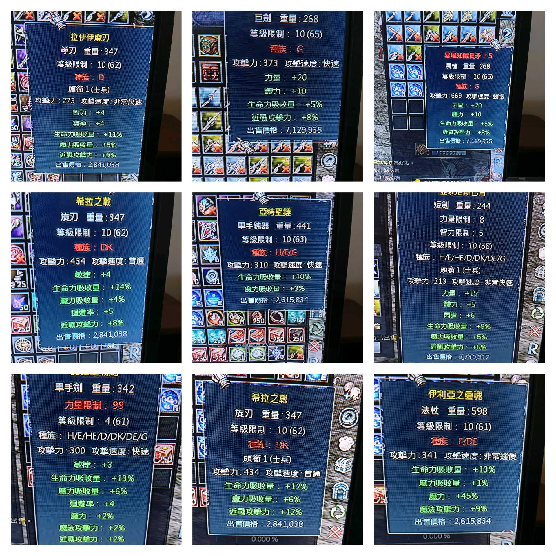 62/10級雙吸10等武器350元,
