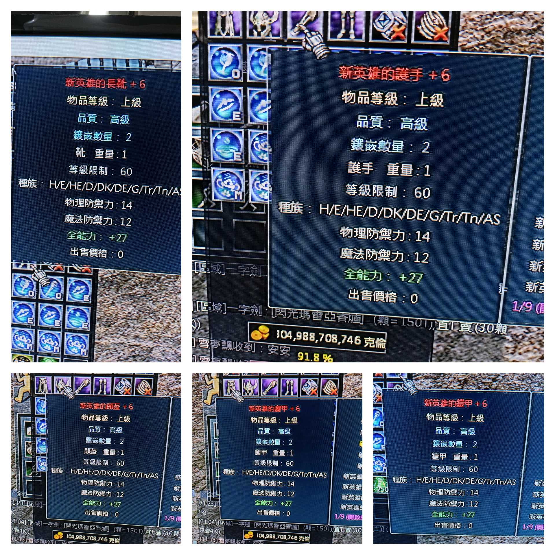 108/10等血裝十5強化1000元,遠古石x10顆106元下標約時間交易完成領收後送2億洛幣,