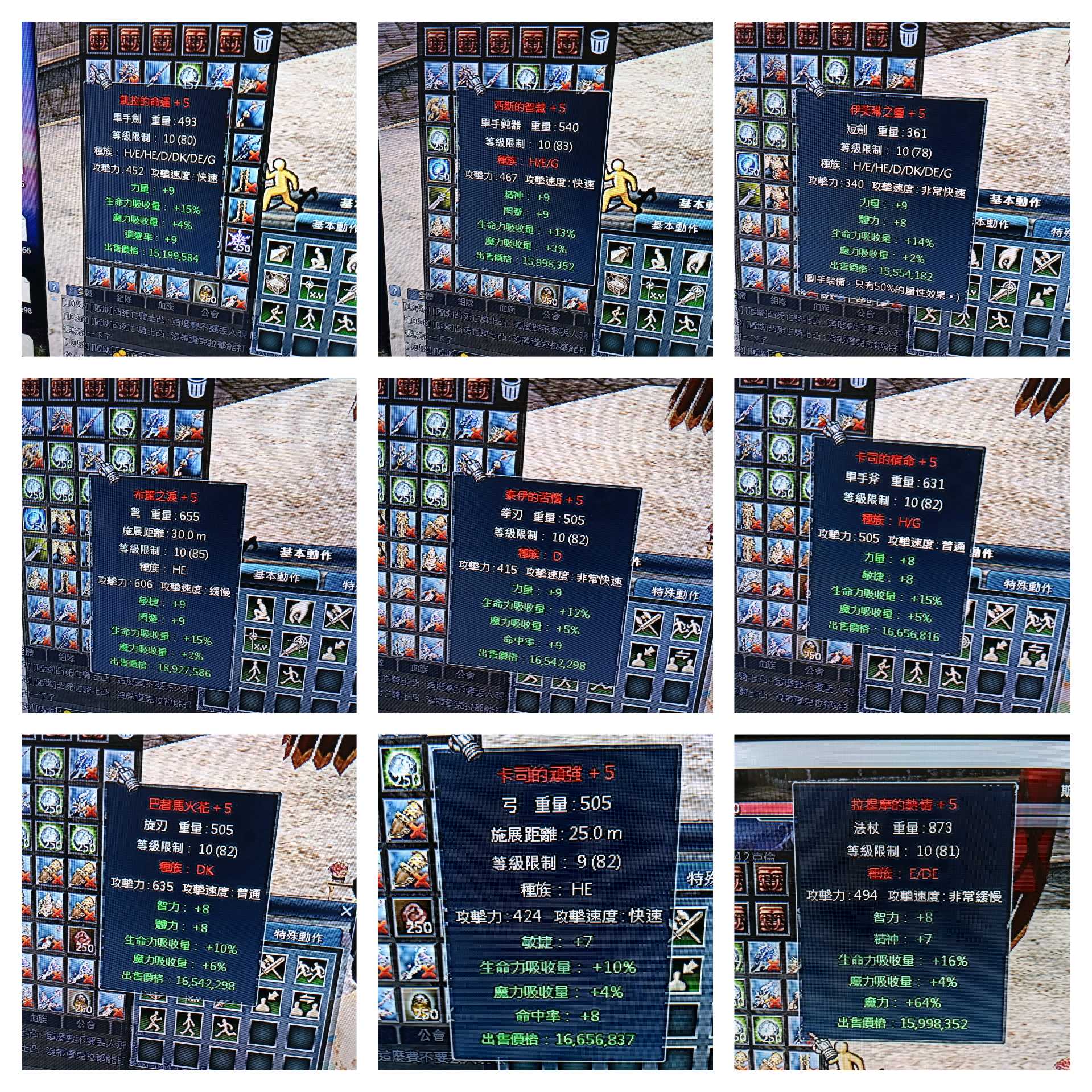 82/10遠古十5雙吸全種族武器850元,