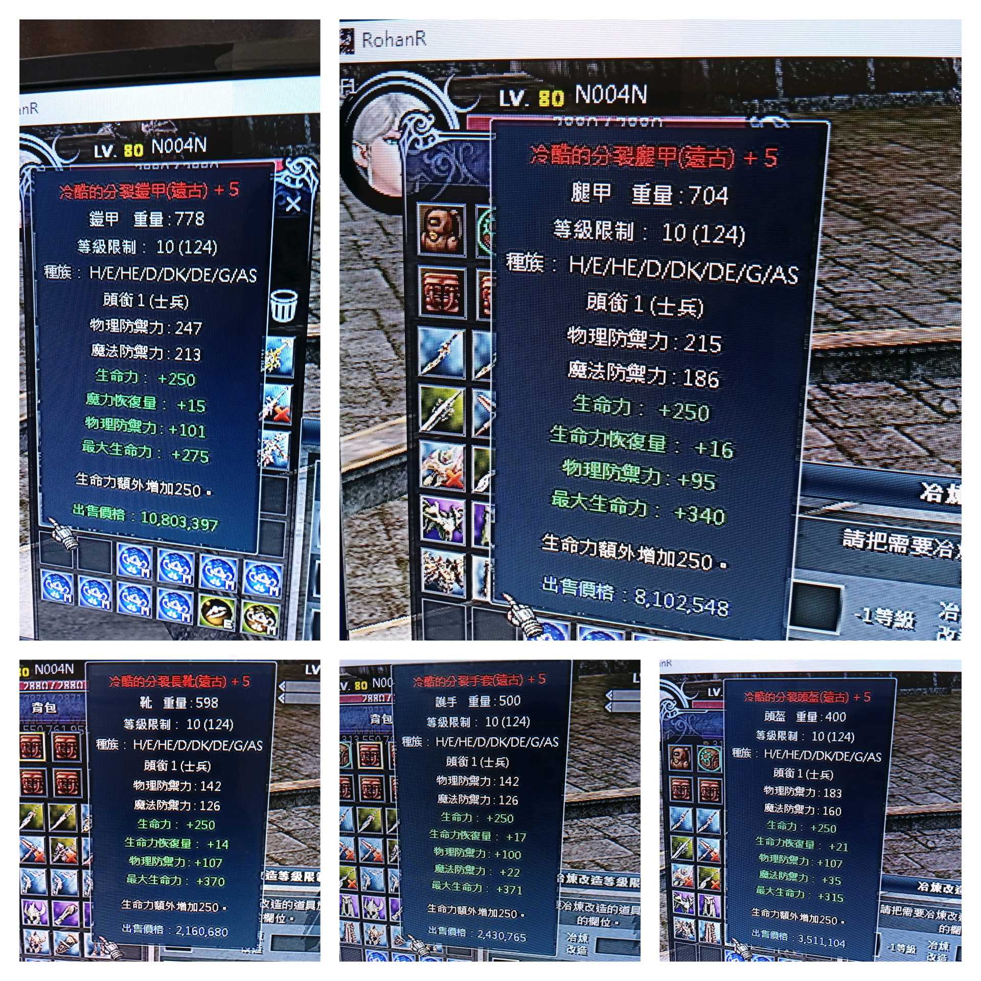 125/10冷酷破百防御血裝1套1500元,