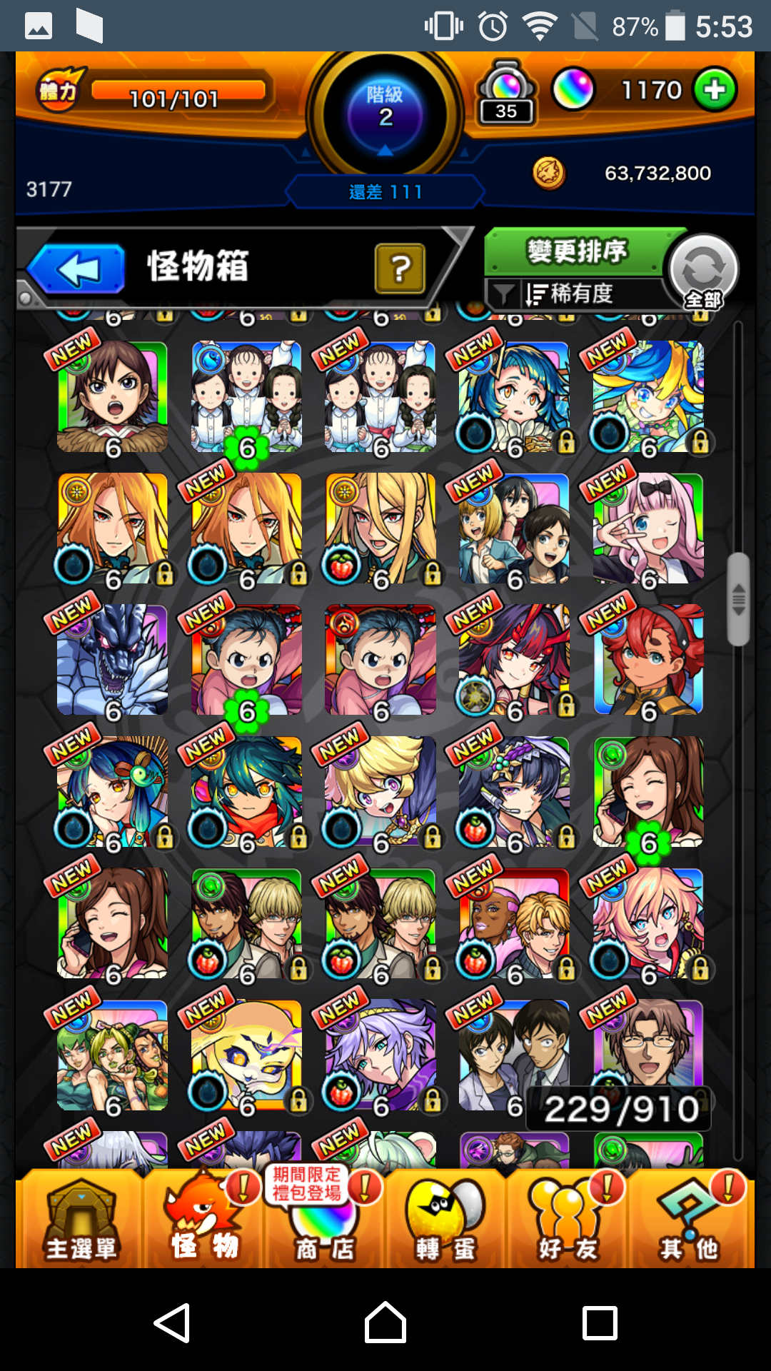 【初始號】艾兒2+正宗2+八雲+妮奧5+瑪娜4+夏日刀劍全+地獄樂全+死神1全+巨人1全