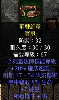 頭部:2死靈20高施18全抗黃色寶冠 150
