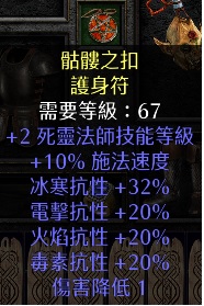 項鍊:2死靈10高施+20全抗+32冰抗(67級)200