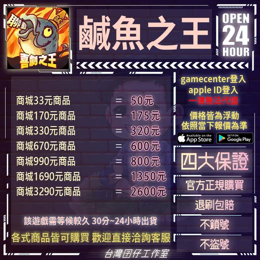 代儲【人民幣30元商品=200元】 🏆24H客服🏆現貨秒出🔥台灣囝仔🔥鹹魚之王陸服🔥20萬保證金