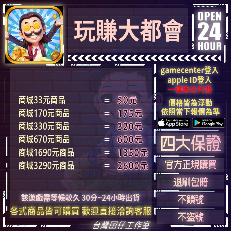 代儲【商城1690元商品=1350元】 🏆24H客服🏆玩賺大都會代儲🔥現貨秒出🔥台灣囝仔🔥