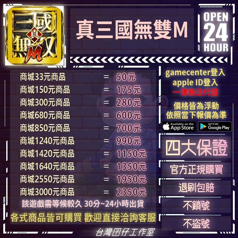 代儲【商城33元商品=50元】 🏆24H客服🏆真三國無雙M代儲🔥現貨秒出🔥台灣囝仔🔥